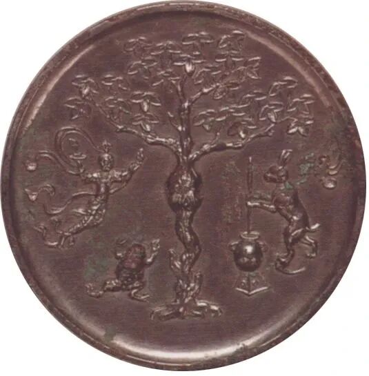 蟾蜍就是我们俗称的癞蛤蟆。癞蛤蟆在今天人们的眼中是一种很丑陋的动物,但是古代曾经有蛤蟆崇拜。科学家推断,青蛙是第一种能从水中爬到陆地上生存的动物,最初身体庞大,曾经是整个世界的霸主,只不过到人类有了文字记载历史的时候,它已经进化到现在这个样子了。古埃及和古印度都曾经有过青蛙崇拜。在中国文明史的新石器时代,蛙文化略晚于鱼文化,也是一种重要的文化形态,在一些出土文物上有很多蛙纹。青蛙肚子很大,生殖能力极强,所以青蛙崇拜也是一种生殖崇拜。在古人眼中,蟾蜍还是一种长寿神物。据《太平御览》“虫豸部”记载,蟾蜍是寿命长达三千岁的动物。