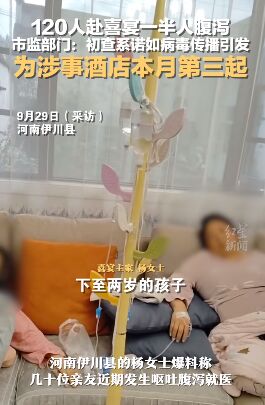 伊川县市监局工作人员告诉记者,目前酒店已经关闭,并进行了消杀。此前,该酒店9月10日与20日宴席用餐者中也有人反映腹泻。当地市监局联合卫健部门排查,初步确定为诺如病毒传播引发。