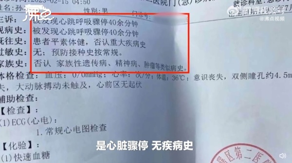 视频展现了病历截图,孙先生称大伯无遗传病,无基础疾病。