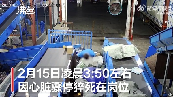 2月21日,据西部决策网援引“沸点视频”报道,2月20日,在浙江宁波,孙先生60岁的大伯在浙江宁波中通快递分拣中心工作,2月15日凌晨3:50分左右,因心脏骤停猝死在岗位。