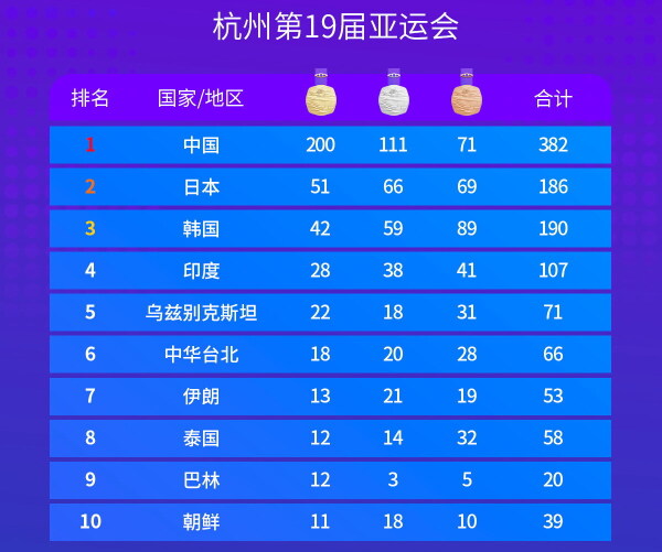 亚运会最终奖牌榜出炉!中国代表团201金,姚明+中国男篮最丢人
