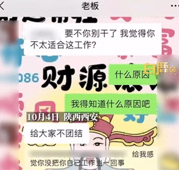 10月8日,据白鹿视频报道,近日陕西西安一女子称自己因朋友圈屏蔽了老板和同事,被老板辞退,此事引发关注。