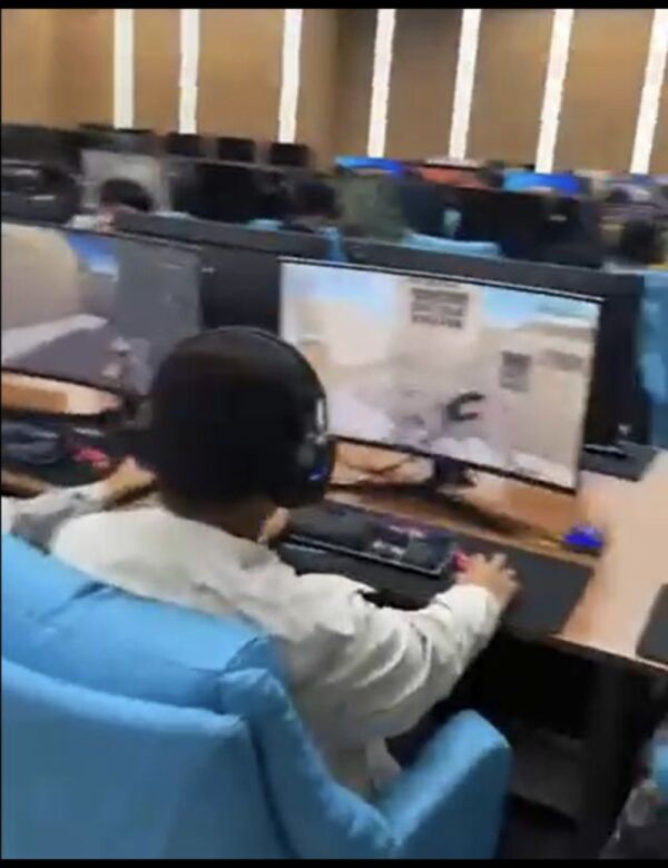 大皖新闻记者注意到,网友所发视频开头便有一蓝色门牌上写到“电子阅览室”,门口一工作人员正抽着烟,有学生在门口吧台选购商品。当镜头扫向“阅览室”内部后,记者看到不少学生正坐在蓝色沙发椅上专注地打着游戏。