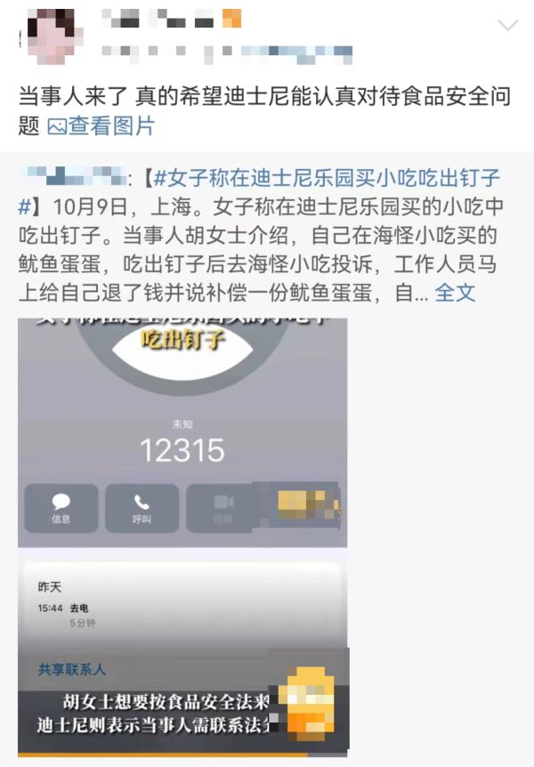 此外,当事人还在社交媒体发文称,希望迪士尼能够认真对待食品安全问题。