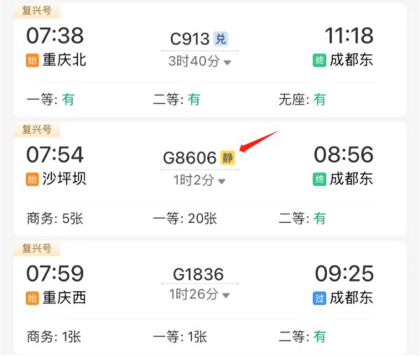 成都到重庆的高铁动车组中