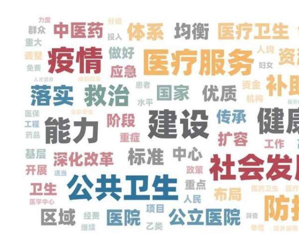 △ 各省2023年预算报告对卫生健康费用支出的关键词统计,图中字体越大的部分词频越高