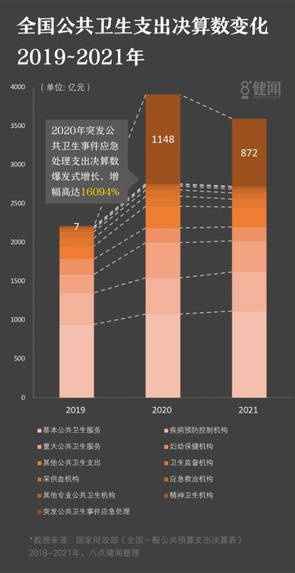 有专家分析,北京在疫情中开展了更多公卫建设项目,导致资金投入更多。例如,北京市在《报告》中提到了具体的投入项目:支持建设市疾控中心新址,实现全市建设负压病房1558间,持续推进公共卫生防控救治能力建设。