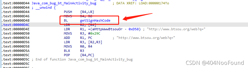 IDA查看bug这个函数采用的是静态注册,里面调用了一个getSignHashCode,跟进去看看。