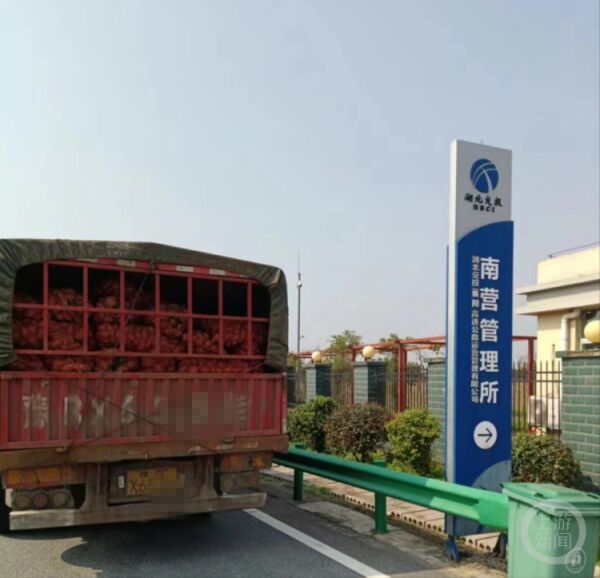 大货车所运货物接受湖北交投南营管理所查验。图据上游新闻