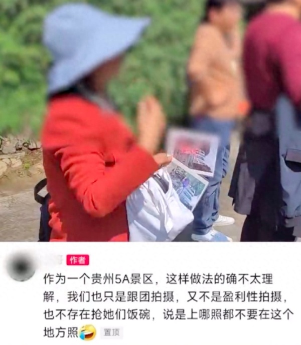 网友表示,在黄果树景区游玩,使用手机拍照可以,但使用单反相机拍照,经营付费拍照的大妈们就会入镜阻止,但自己是跟团游的摄影师,拍照并不以盈利为目的。
