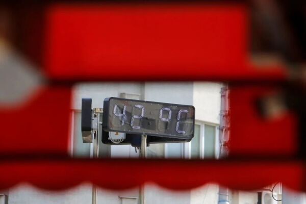 7月25日,罗马尼亚布加勒斯特街头的一个温度指示牌显示气温达到42℃ 图片来源:新华社