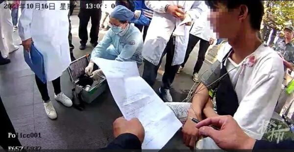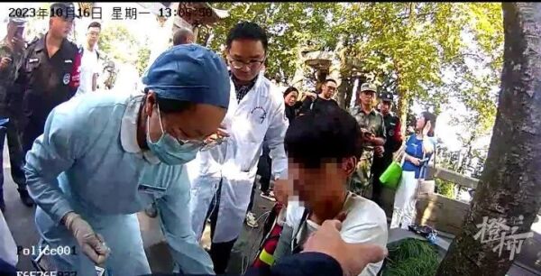巡逻队员说,当时小伙不知怎么摔倒后,浑身抽搐,其他游客围过来,有个年纪大的大伯说自己是医生的,拿出针灸给小伙扎了几下,又做了心肺复苏,过了三四分钟后,小伙才喘过气来。
