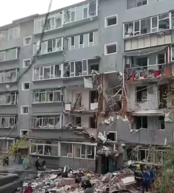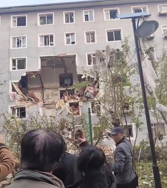 此前,据现场视频显示,爆炸点上下楼层均受波及,楼房外墙被炸开,部分楼体坍塌。爆炸冲击波造成本栋楼和附近楼房玻璃破碎、窗框变形受损,现场一片狼藉。