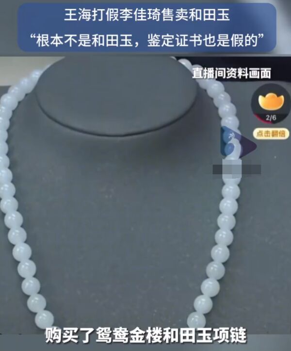 就连打假人士王海也盯上了李佳琦,称有消费者在李佳琦直播间购买了500多块钱的和田玉项链,经鉴定是假的,主要成分为“碳酸盐-透闪石质玉”。连鉴定证书都是假的。