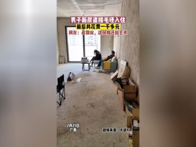 2月21日,广西。男子新毛坯房直接入住,前后花费仅1000元左右,还给客厅配了投影。