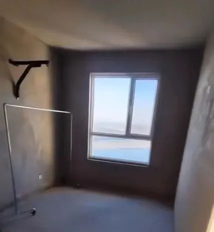 视频中,男子一镜到底展示了自己的毛坯房:客厅,花费0元。