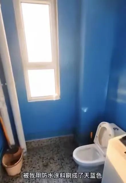 男子用防水涂料刷成了天蓝色,真正的简约风。