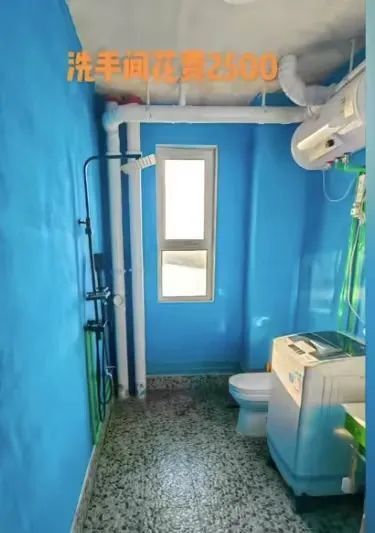 卫生间,花费2500元,可以满足刷牙、淋浴、如厕、洗衣等生活需求。