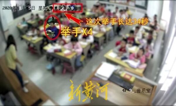 根据陆女士提供的教室监控画面显示,2020年11月5日上午第三节课,从10点21分至10点31分,大约10分钟的时间里,身穿蓝色衣服、坐在课堂第二排的多多,曾因身体不适先后举手7次,其中第四次举手30多秒,但前四次班主任老师鲍某并未注意到,直到第五次才引起鲍某关注。鲍某与多多交流几句后,多多便趴在桌子上休息。根据多多同桌与陆女士一段对话录音显示,“当时他刚上课大概十分钟(开始不舒服),老师说让他坚持一会儿,快下课了。他就趴在桌子上不想动了,脸上出了很多汗,袖子都被汗浸湿了。”