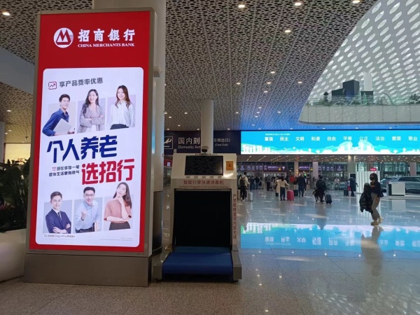 个人养老金未来前景广阔,已成为业内的共识。随着人口老龄化的加速,提早进行养老规划对个人而言愈发重要。图为招商银行在深圳机场的广告。(中国商报记者 杨宏生/摄)