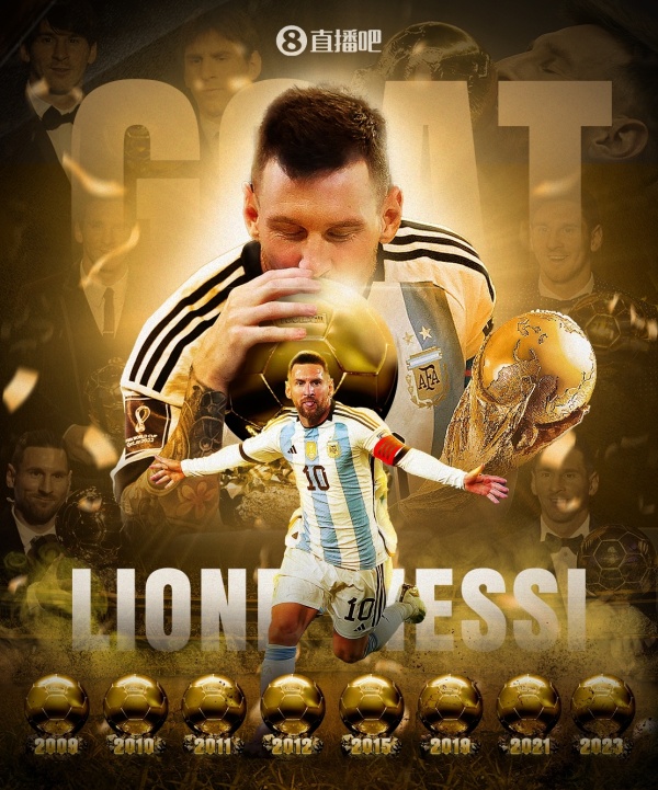 官方消息,36岁的梅西荣膺2023年金球奖,生涯第8次收获此荣誉,刷新了由自己保持获奖数的纪录。