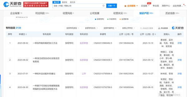 知识产权信息显示,安踏(中国)有限公司已申请“安踏”“ANTA”“ANTA ZERO”“ANTA T-AGE”“安踏创动空间”等上千枚商标,其中多数商标已完成注册。此外,该公司还申请了2000余项专利,其中1300余项处于有效状态。