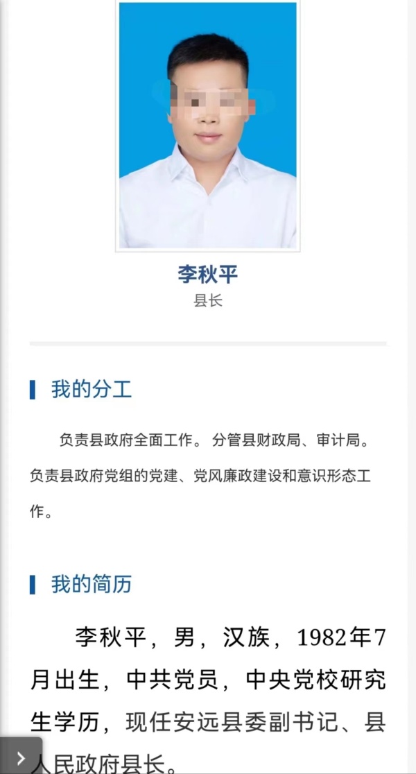 看下李县长的简历:1982年7月出生,江西吉安新干人,2000年至2004年就读于江西科技师范学校(现江西科技师范学院)中文系汉语言文学专业。工作四年后,升任学校行政办公室副主任。