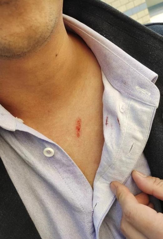涉事老师称,“后来我及时把这事给喝止了,实际上涉事学生事发后这5天一直在学校好好上课了,并没有向老师说任何的不适。报完警,给警察说挨打了,然后(我)再去的医院。”
