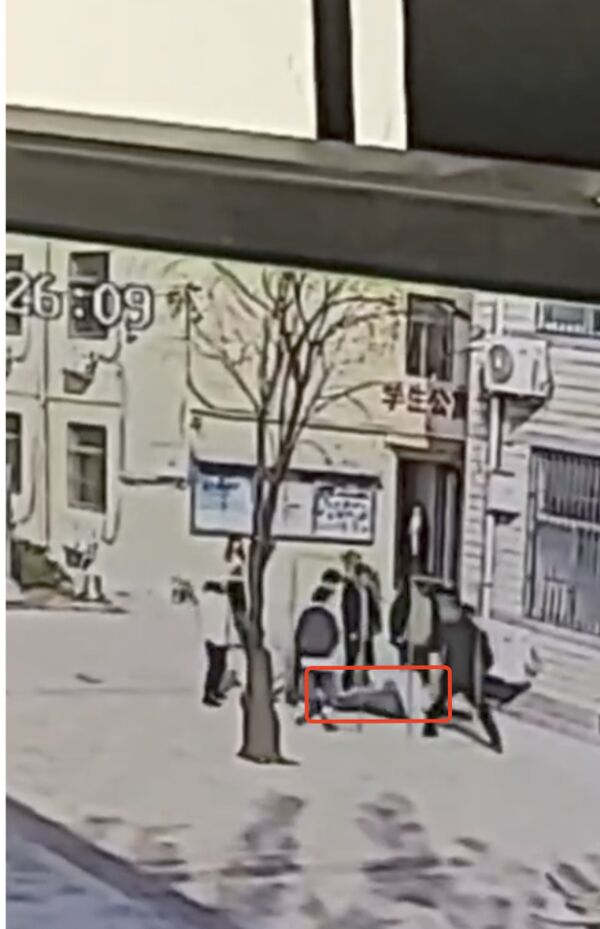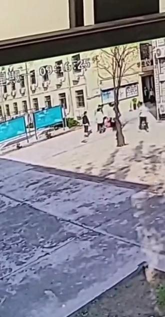 ▲监控视频中卢女士女儿讲述的第二次被打的情况