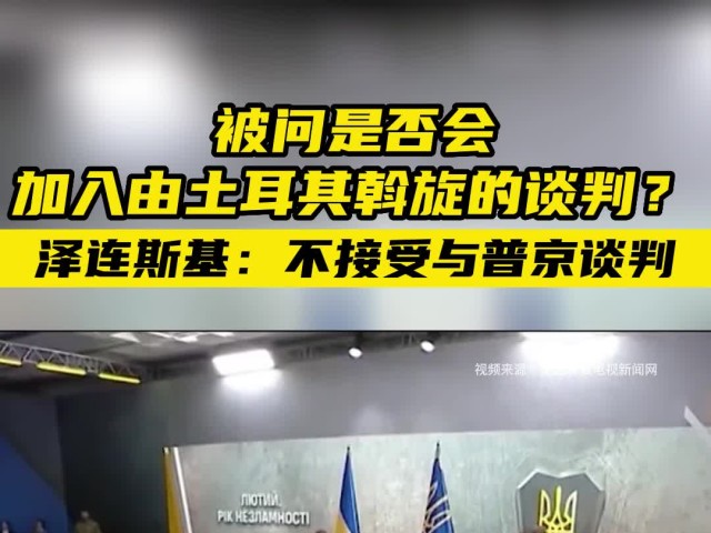 【环球网报道】据美国有线电视新闻网(CNN)消息,乌克兰总统泽连斯基当地时间24日被记者提问,如果俄罗斯总统普京来到谈判桌前,他是否会加入由土耳其斡旋的谈判,泽连斯基回答称,“我不接受。”