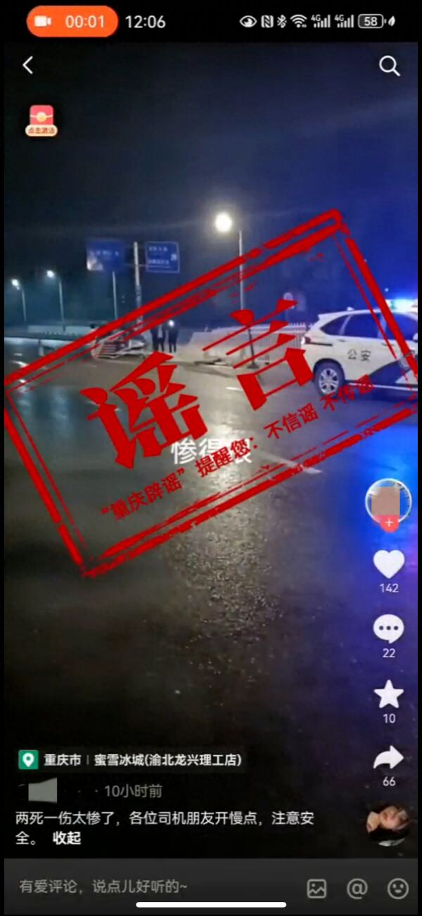 “重庆辟谣”提醒广大网民:不造谣,不信谣,不传谣,自觉抵制网络谣言,共同守护清朗网络空间。