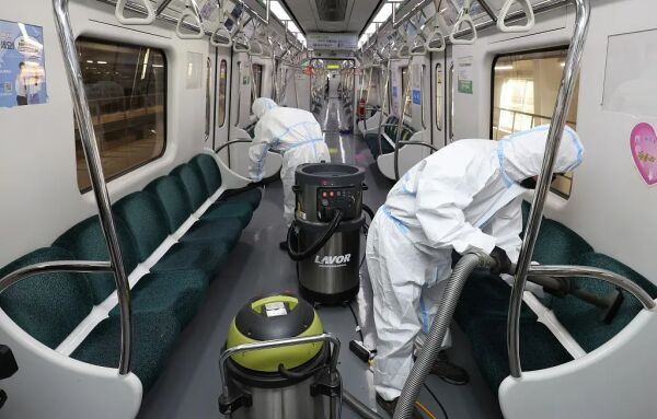 当时时间2023年11月8日,韩国光山轨道交通车辆基地,为了预防最近扩散的臭虫,工作人员正在进行特别的杀虫工作。
