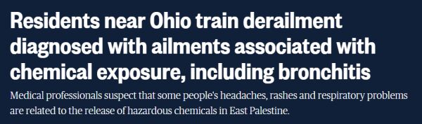 美国俄亥俄州“毒列车”脱轨事故仍旧余波不断。当地时间2月25日,美国国家广播公司(NBC)报道称,事故现场东巴勒斯坦镇附近的居民和工人已被诊断出患有支气管炎和其他疾病,医疗专业人员怀疑这些症状与接触危险化学品有关。