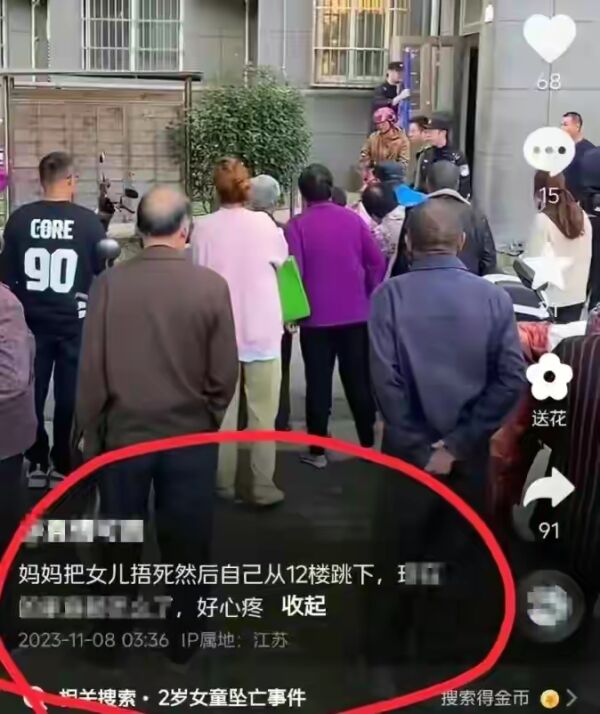 这不禁让我想到11月8日发生在扬州的一件事,也是一名年轻的妈妈,将女儿用被子捂死后从12楼跳下,双双殒命!