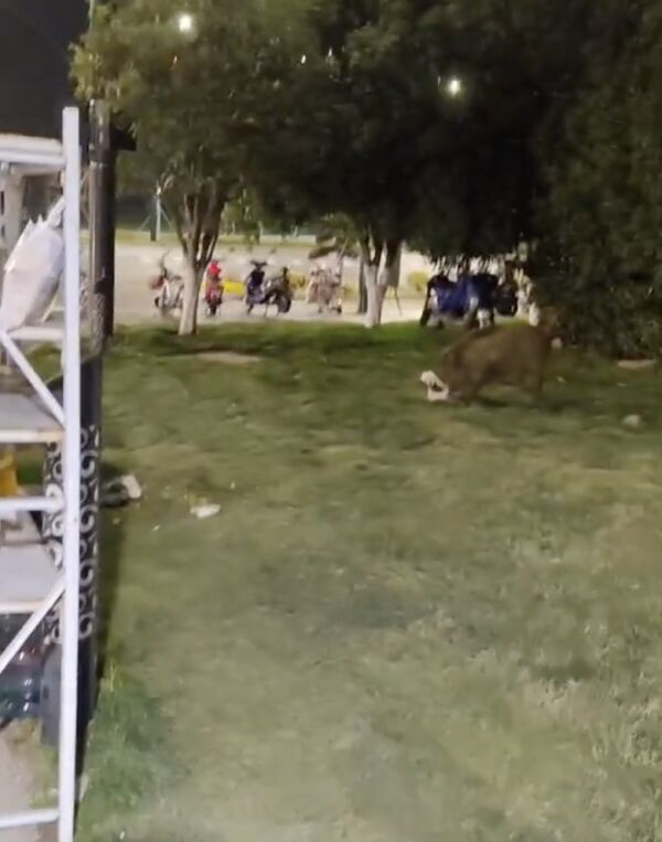 拍摄者黄同学称,自己半夜吃夜宵,去学校门口拿外卖,发现外卖架子后面有一只大野猪,在那里吃外卖。当时自己在旁边观察了大概5分钟,发现野猪吃了5份左右的外卖,地上有很多外卖的袋子,外卖架也都被翻乱了很多外卖直接掉在地上。好在自己的外卖放得比较高,没被野猪吃掉。