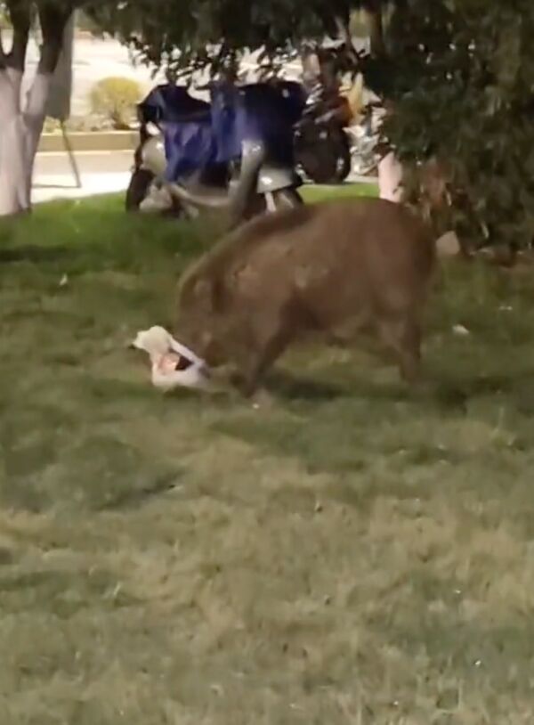 根据白鹿视频报道,2月26日在江苏南京。凌晨1点,男大学生去校外拿外卖,结果发现外卖架后有一只200斤左右的野猪,正在偷吃同学们的外卖,引发网友热议。