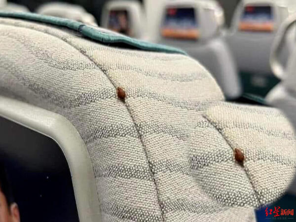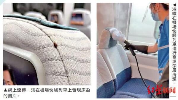 ▲疑似香港机场快线列车座位上出现床虱的照片在社交媒体广泛传播