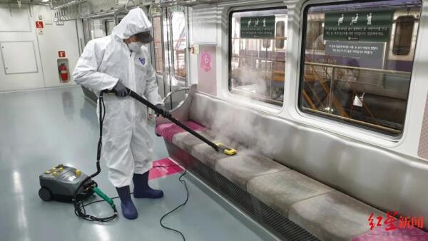 ▲爆发“床虱危机”后,韩国地铁工作人员正在消杀