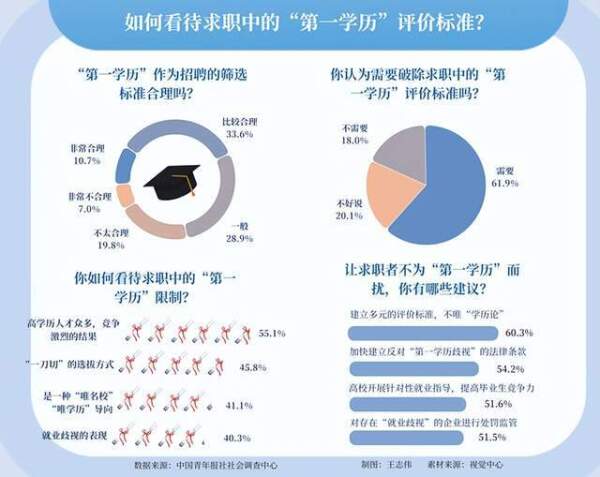 调查显示,61.9%的受访者认为需要破除求职中的“第一学历”评价标准。