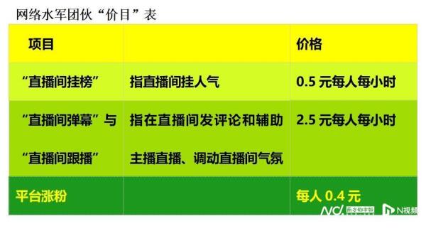 这样的直播“服务”可谓精准拿捏了买家需求,那么,如此独到的服务是如何收费的呢?一份“价格表”清晰记录了“水军”团伙的经营项目及标价。