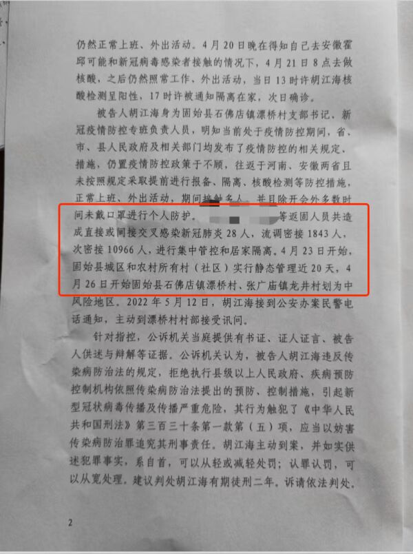 出现感染者的消息很快在固始县刮起一阵风暴,舆论的中心,胡家没有一个人能幸免。第一个汇报阳性的,作为村支书的胡江海首当其冲。他的流调图像炸弹一样,在各种各样的微信群里传开了。胡江海有了个外号,叫“胡炸”,网络上开始了对他的集中讨伐:固始罪人胡江海,胡炸一下,把美丽大固始炸成什么样了?
