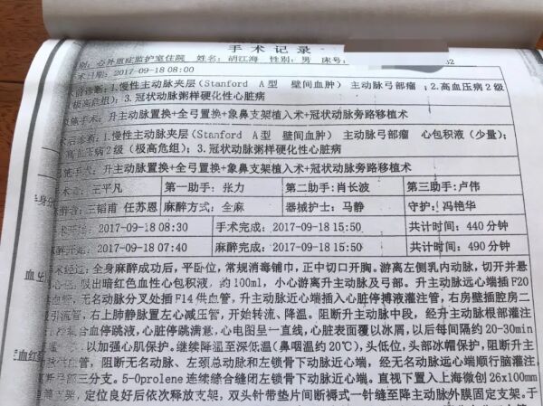 ●胡江海前几年因患主动脉夹层动过开胸手术。讲述者供图