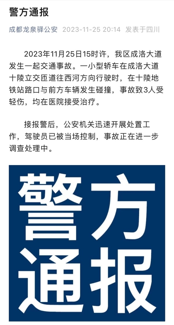 昨晚(11月25日)成都龙泉驿公安通报: