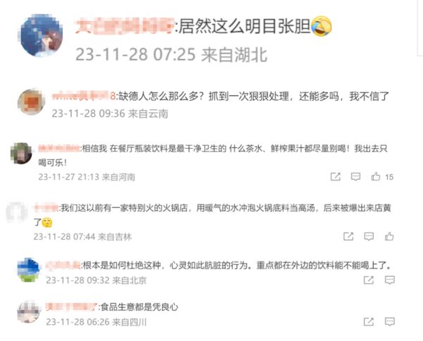 今年8月,浙江温州的田野中餐厅(飞虹店)就被网友曝光使用拖把池水龙头流出的自来水勾兑橙汁,当地市场监管部门调查核实后,查封了涉事经营场所,并对当事人予以立案,对当地所有相关连锁门店及其他餐饮单位开展食品安全隐患排查。
