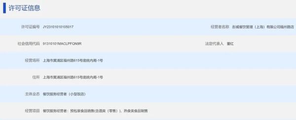食品经营许可证显示,该店今年7月20日刚获得经营资质,业态为餐饮服务经营者(小型饭店),经营项目为预包装食品销售(含酒类(零售))、热食类食品制售。