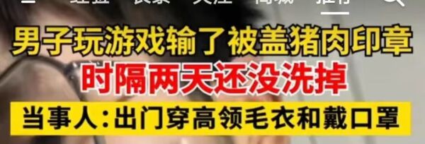 导语:一位帅气的年轻小伙子,因为输了一场游戏,竟然被盖上了蓝色的猪肉印章!这个印章洗不掉,他出门只能穿高领毛衣和口罩遮挡。视频一经上传,立即引爆了社交媒体,评论区更是乐翻天!