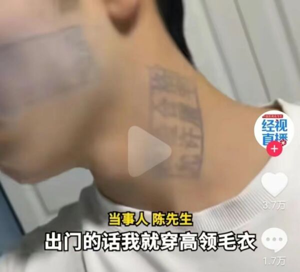近日,一段视频在网络上迅速走红,视频中一名年轻小伙子的脸和脖子上被盖上了蓝色的猪肉印章,原因竟然是他在玩游戏时输了一局。令人啼笑皆非的是,这个印章居然洗不掉,导致他出门时只能戴着口罩和穿高领毛衣来掩饰这个尴尬的状况。