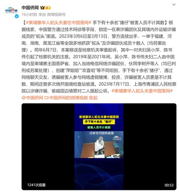 根据线索,中国警方通过技术网侦等手段,锁定一在柬诈骗团伙及其境内外运输诈骗成员的“蛇头”渠道。2023年3月6日至3月13日,警方连续出手,一举于福建、河南、湖南、黑龙江省等全国多地抓获“蛇头”及诈骗团伙成员十数人(均另案处理)。同年6月7日,本案移送至检察机关审查起诉,其中一对夫妇吴小萍、陈书伟引起了检察机关的注意。2019年至2021年间,吴小萍、陈书伟夫妇二人由中国境内至柬埔寨王国菩萨省,加入当地电信网络诈骗团伙,伙同李树开等人(均已判刑或另案处理),创建“萍姐组”“欢喜组”等不同组别,手下有十余名“猪仔”,通过网络聊天交友,诱骗被害人参与网络虚假赌博、投资,诈骗被害人员更是不计其数,期间还曾多次绕开国境检查站偷渡。2023年7月17日,上海市青浦区人民检察院以涉嫌诈骗、偷越国边境罪对二人提起公诉。