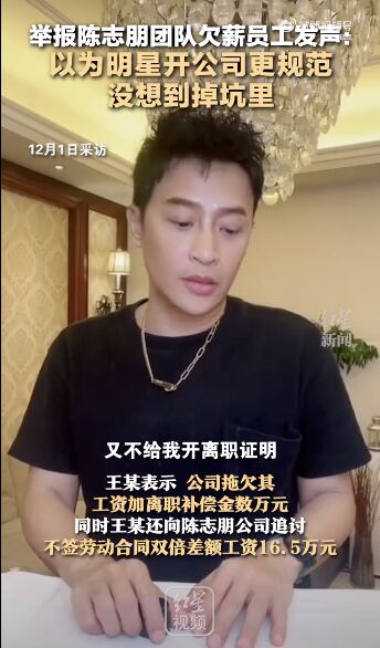 今日(12月1日),陈志朋被曝拖欠员工工资及赔偿金一事在网络发酵。网友王某称,2021年7月他经人介绍进入陈志朋直播团队,月薪1.5万元负责带货招商工作,2023年9月陈志朋团队解散。王某表示,公司拖欠其工资加离职补偿金数万元,同时王某还向陈志朋公司追讨不签劳动合同双倍差额工资16.5万元。12月1日,红星新闻多次联系陈志朋助理兼直播公司负责人电话均无人接听。陈志朋直播业务合伙人严女士,向记者证实了王某在陈志朋公司工作的事实。但对于同日在网络曝出的陈志朋曾偷税漏税、辱骂员工等情况,其称因签保密协议不能向记者透露。王某提供的政务工作回执单显示,杭州市劳动仲裁机关已受理其申请的劳动维权案。