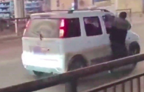 据百姓关注报道,12月5日18时许,江西景德镇新厂西路上一男子用头盔猛砸轿车玻璃后被拖行数百米远。